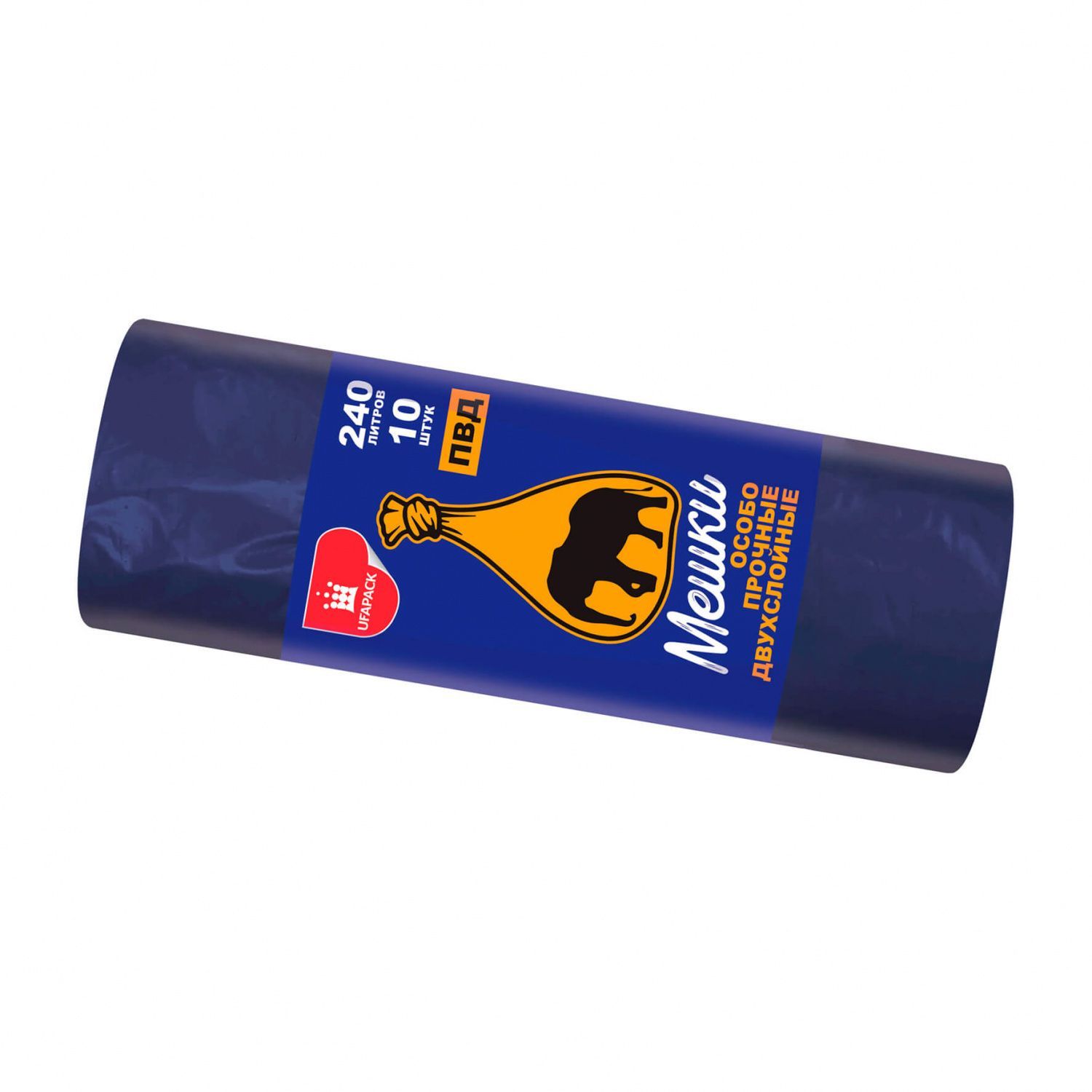 Мешки для мусора 240 л, синие, рулон 10 шт., ПВД 36 мкм, 1350х900 мм, Уфа Пак, МВ1854 (МВ 240-10с)
