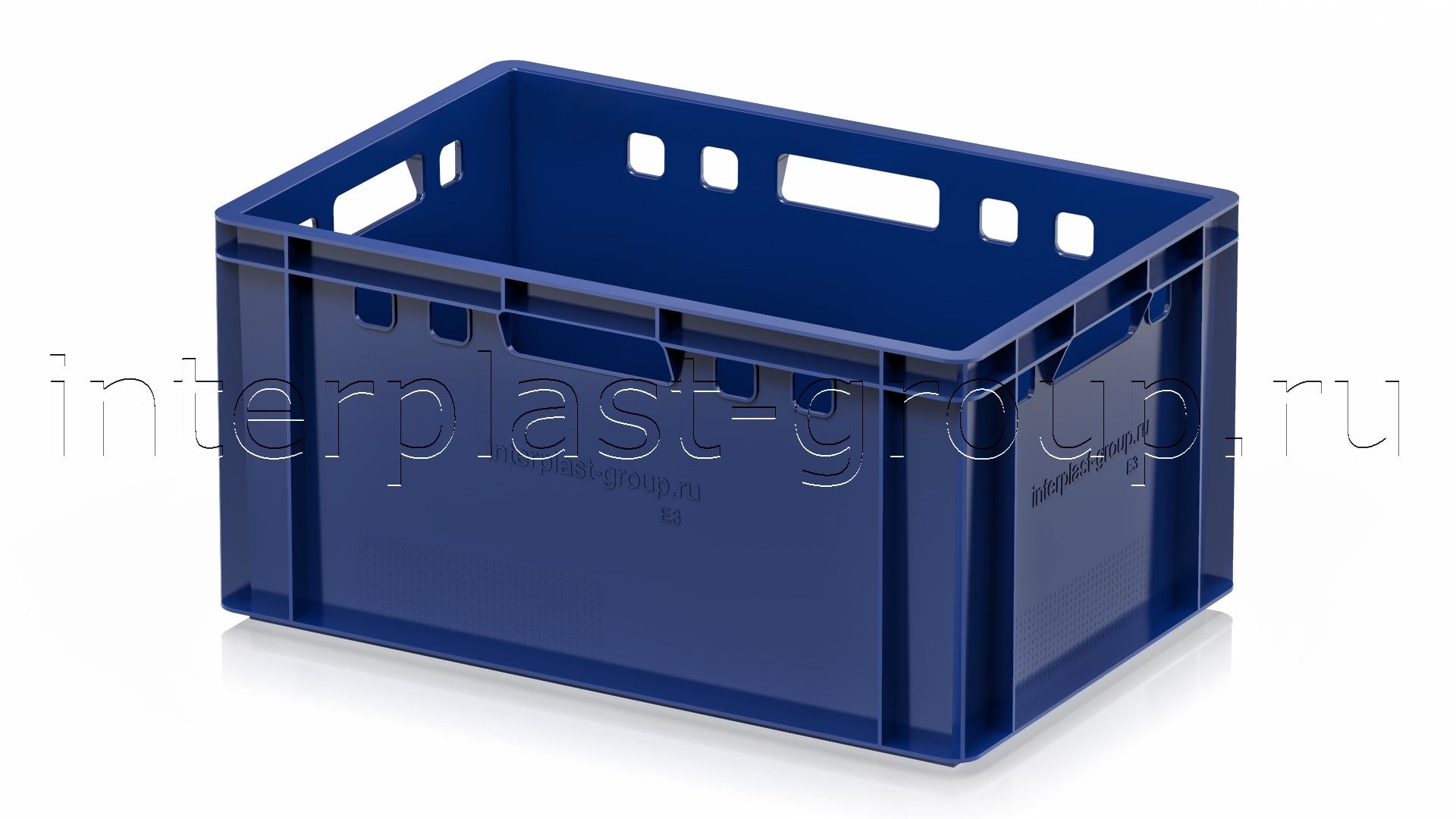 Ящик для мяса Е3 это третий по размеру в линейке мясных ящиков. Разработан специально для использования в мясной промышленности. Отлично штабелируется и собирается в единый сет со всеми ящиками серии. Изготовлен из первичного полиэтилена, и адаптирован для хранения в холодильных и морозильных камерах.